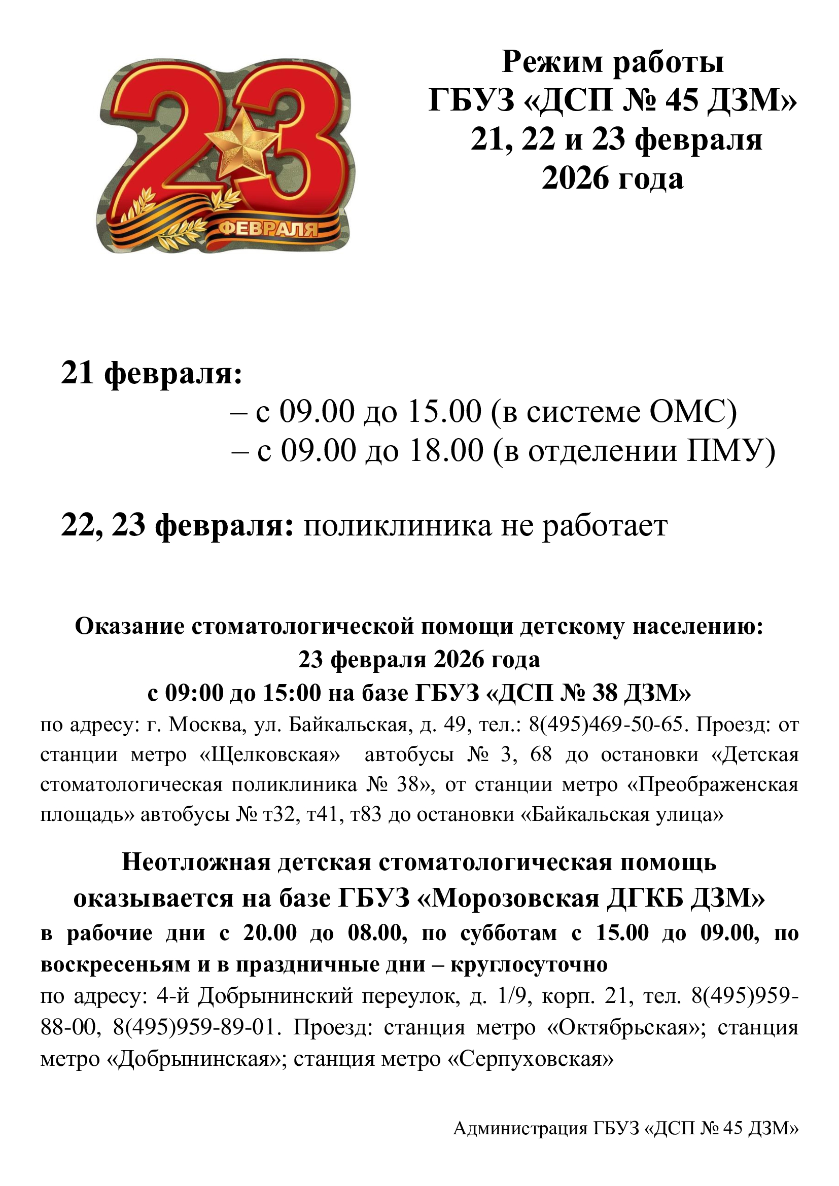 Государственное бюджетное учреждение здравоохранения города Москвы «Детская стоматологическая поликлиника №45 Департамента здравоохранения города Москвы» (ГБУЗ «ДСП №45 ДЗМ»)